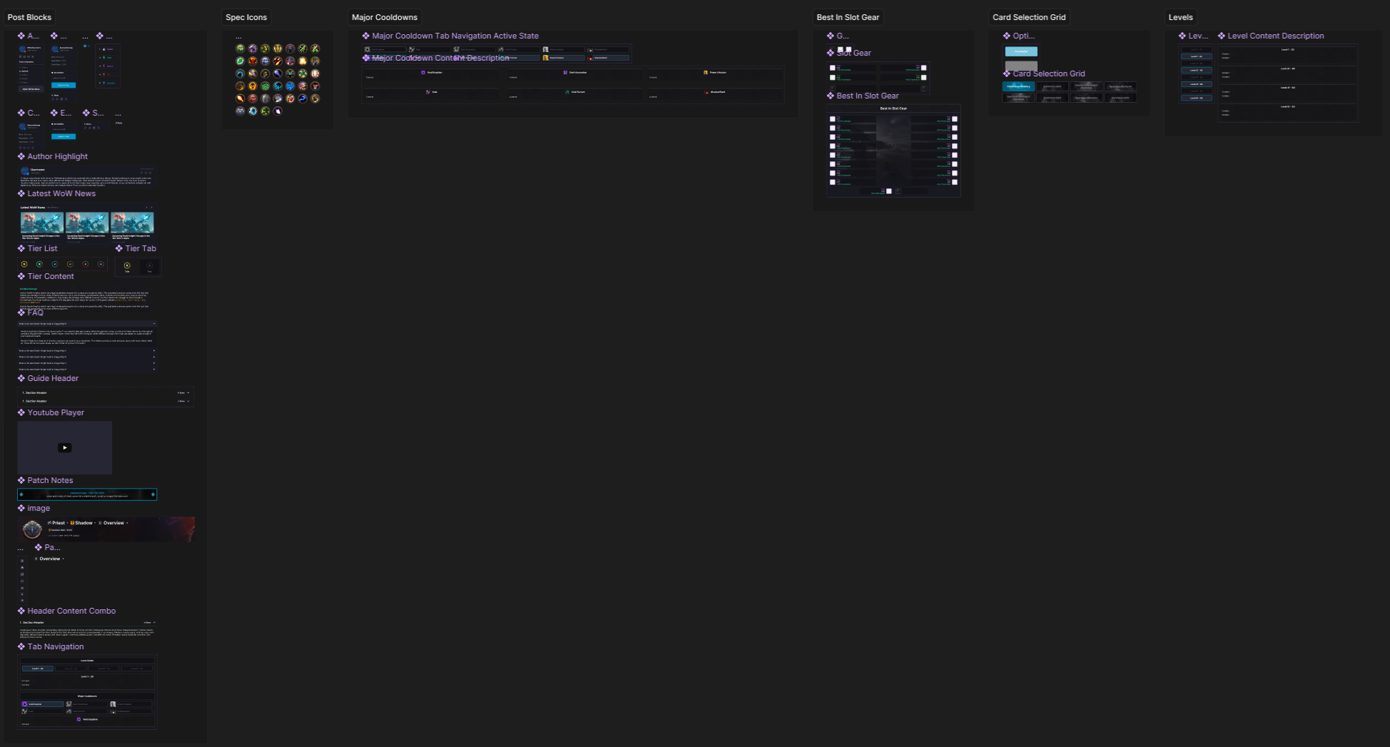An incredibly robust design system was made for this project with component sets corresponding to each supported game, matching it’s theme and assets.